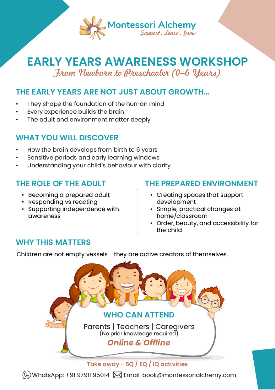 Montessori Alchemy designs workshops based on the needs and specification of clients. We offer workshops for parents, educators, and caregivers. Workshop topics may include: